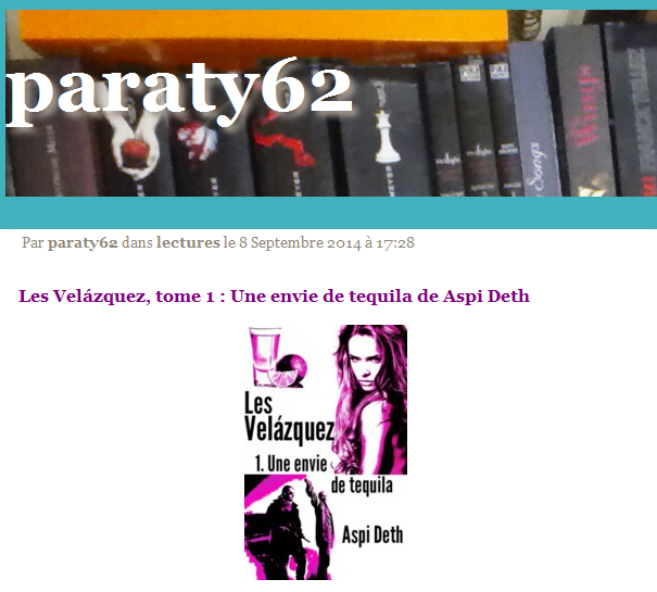 Après la superbe chronique de Leïla ( Entre nous ) que je vous ai postée hier, j'ai le plaisir de partager avec vous l'avis d'une autre blogueuse de talent, Amélie ( Le monde de Paraty62 ) sur "Une envie de tequila".